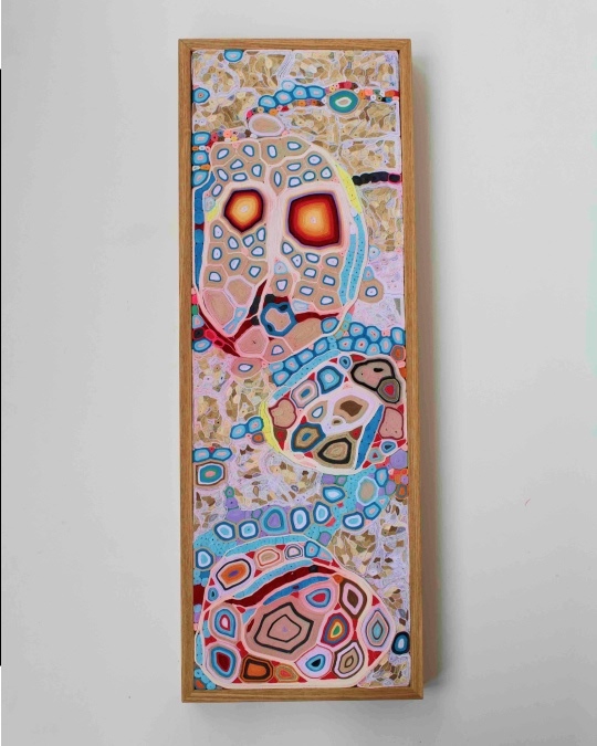 BUY Project: Maps of meaning; Name: Study 59; Material: colored paper, oak frame, silicone, plywood; Dimensions: 52 X 18,5 X 4 cm; Weight: 1,3 kg; Year of creation: 2024